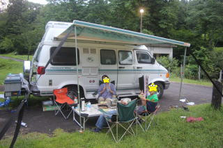 | ここは一体どうやって見つけてきたのかのキャンプ場。あまり知られていないためか、夏休みなのに誰もいません。貸切です。 | ||