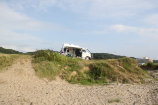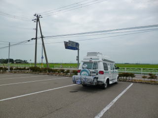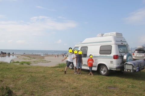 | おーここがキャンパーにひそかに知られる寺泊海岸ですか。 いいじゃないですか。 何もないのですが、景色がきれい。 よしっ 楽しむぞ〜 |