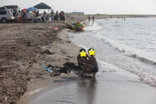 こんな感じで まさしく砂浜です。 足がとられるのかと思いきや、意外と固い。 まったく問題ありません。 |