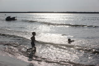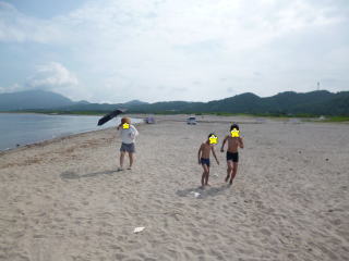 | 子供たちは早速海水浴です。遠浅で子供でも安心。いい海水浴場です。 | ||