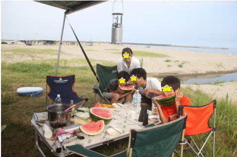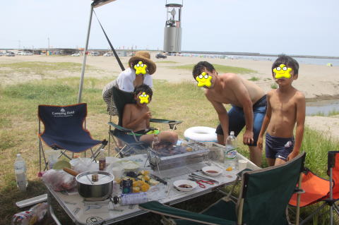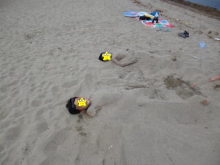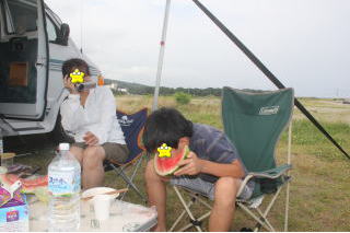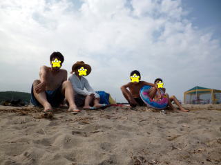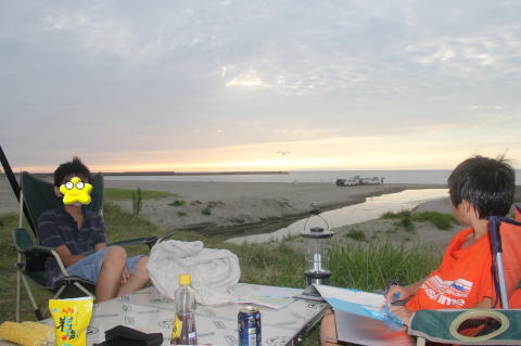 | 子供たちは海の家で勝手に水浴びしてきた後くつろいでいます。ん〜涼しくなってきて快適。 | ![]() |