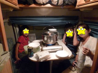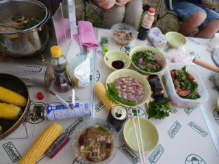 今日はとりあえず諏訪湖に泊まります。 暑いとか言っておきながらやはりサスカ内の食事はお鍋です。 幸いそんな暑くなく、まったりとした時間を過ごします。 |