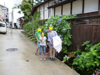 ![]() 今ごろ紫陽花の旬。こんな花飾りが町の人の心意気を表しているよう。 |