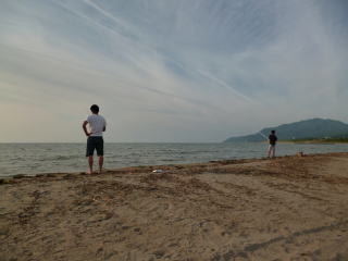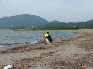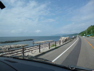 | いやあ、しかし新潟の海は思わぬいい海岸線が続きます。関東の海水浴場よりも格段にいいじゃないですか。 どうしても日本海というと寒〜い薄暗〜いイメージがありますが、間違ってたみたい。なんてったってかんかん照りですし。 |
