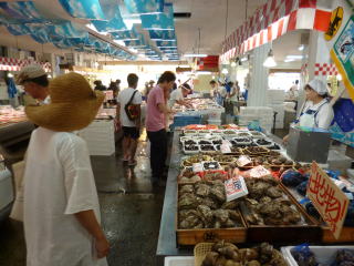 寺泊海岸にはこれまた有名な魚のアメ横なる魚介類のお土産物屋さん通りがあります。 イカ焼きやカニの味噌汁をほうばりながら、奥様は今晩のネタ探しです。 もちろんお土産物屋さんのお決まりで決して安いというわけではありません。 ですので奥様の腕の見せ所でもあります。 |