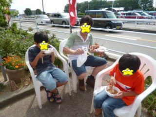 ここでは野菜を大量に購入 信州の道の駅はどこ行っても農産物が新鮮で安い。 ←けんかばかりする子供たち |