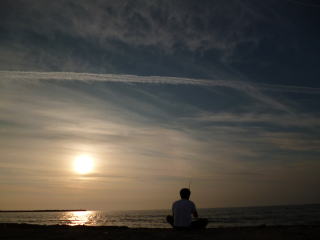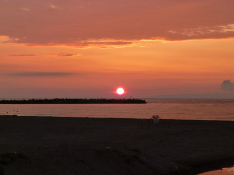 | 海に沈む夕日ってこんなにいきれいなんだ。 なんだか新潟とは思えない景色です。 |