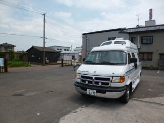 受付の優しいおばさんに朝採れた野菜をいただき、お別れして一路新潟を目指します。 | |