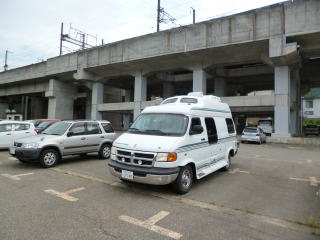 | 新幹線下の公共駐車場に無料で駐車します。広々してて大型車もOK | |